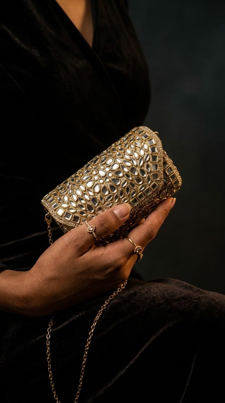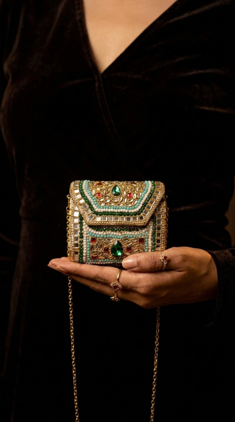 Luxury Kundan Clutch | Mini Embellished Minaudière Bag