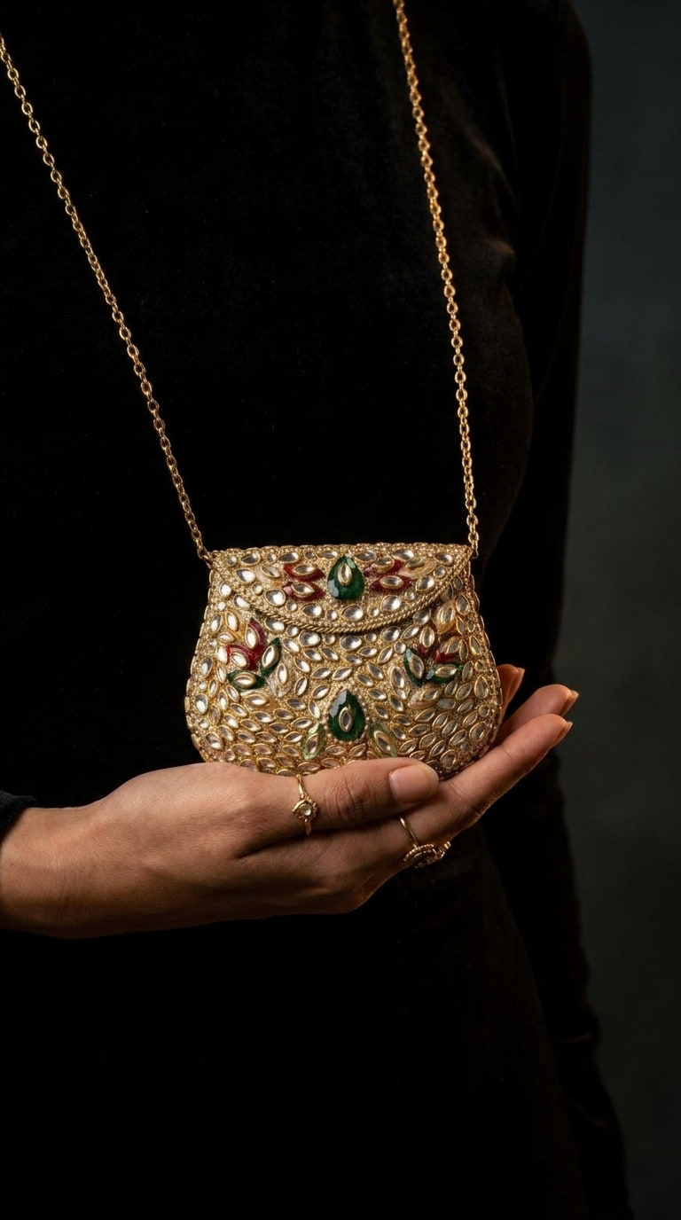 Luxury Kundan Clutch | Mini Embellished Minaudière Bag