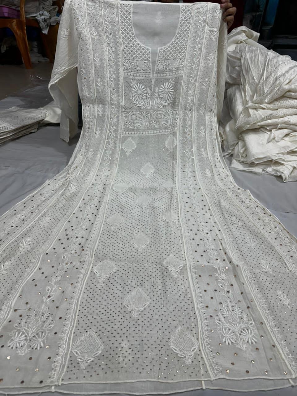 Pure Mul Chanderi Chikankari Mukaish Work Anarkali