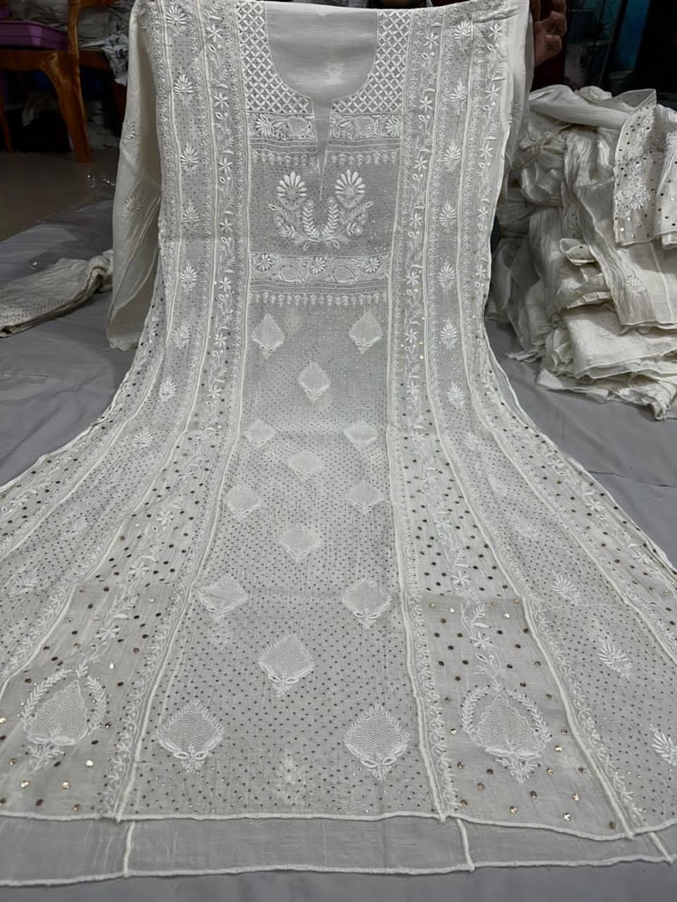 Pure Mul Chanderi Chikankari Mukaish Work Anarkali